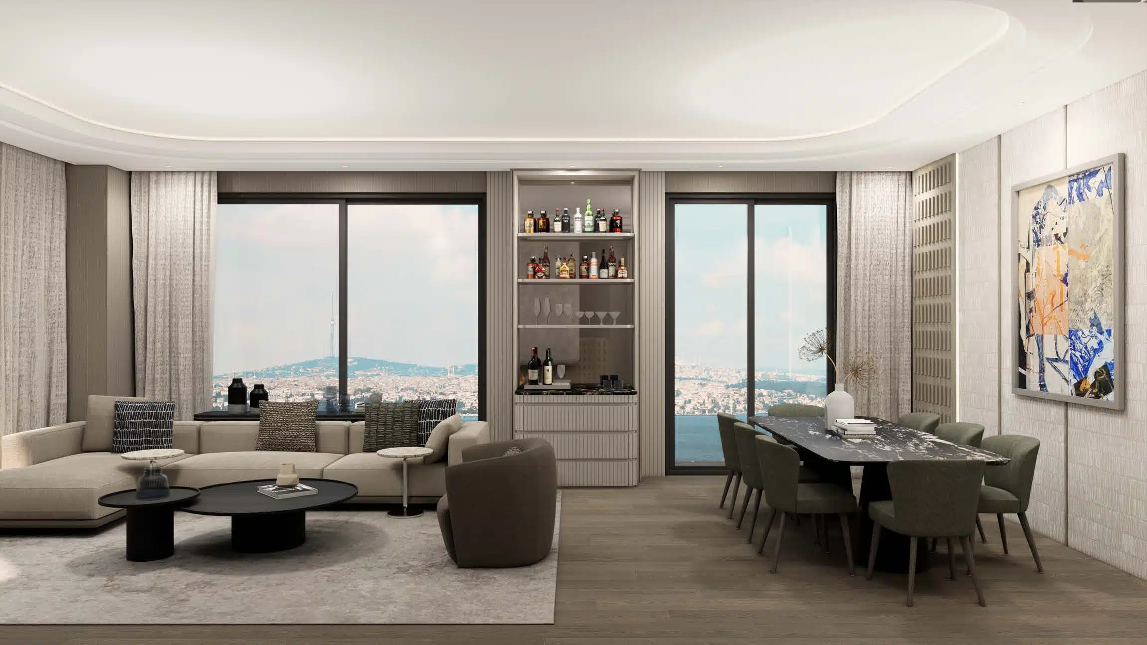 An extraordinary three-bedroom residence at Kempinski Residences Balmumcu offers the rare combination of expansive interiors and an outdoor terrace that opens directly to sweeping views of the Bosphorus and its verdant valleys. This seamless extension of space transforms the home into a sanctuary equally suited to tranquil mornings and elegant evenings spent entertaining against Istanbul’s most iconic backdrop.