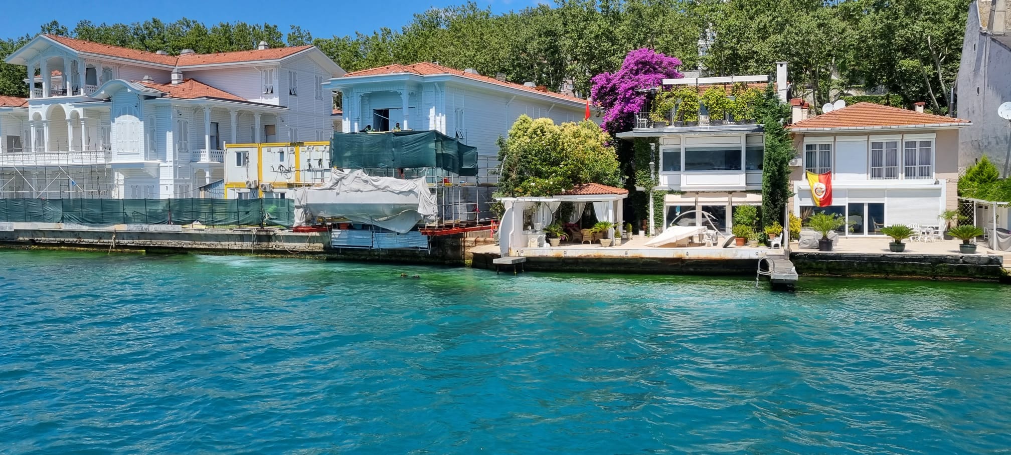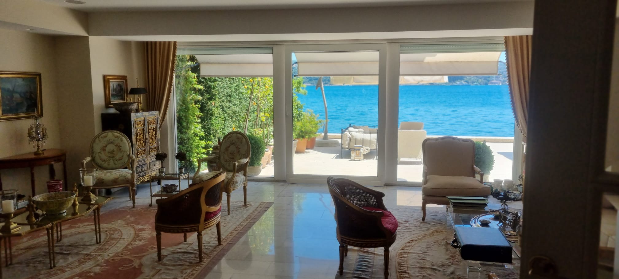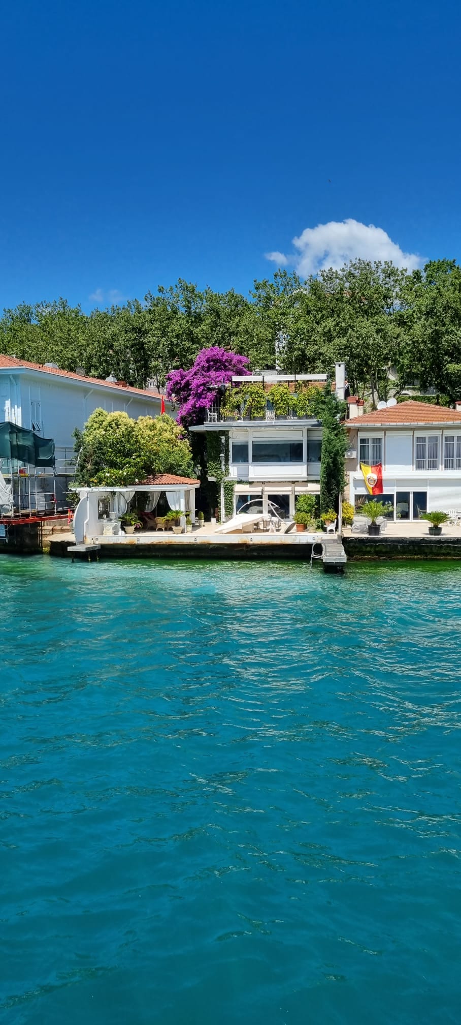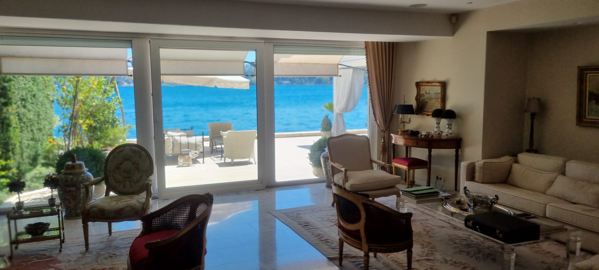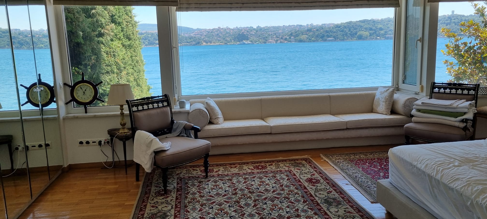 Built in 1956 on approximately 700 m² of land with a 13-meter seafront quay, this timeless residence features a three-storey main building. Ground floor: entrance hall, living room, kitchen, guest WC; first floor: 3 bedrooms, sitting room, 3 bathrooms; second floor: salon/library, bathroom, additional room. Complemented by a guest house (1 bedroom, kitchen, bathroom) and staff quarters (for 2, with kitchen and bathroom), it ensures complete comfort. Its private quay offers direct access to the Bosphorus.